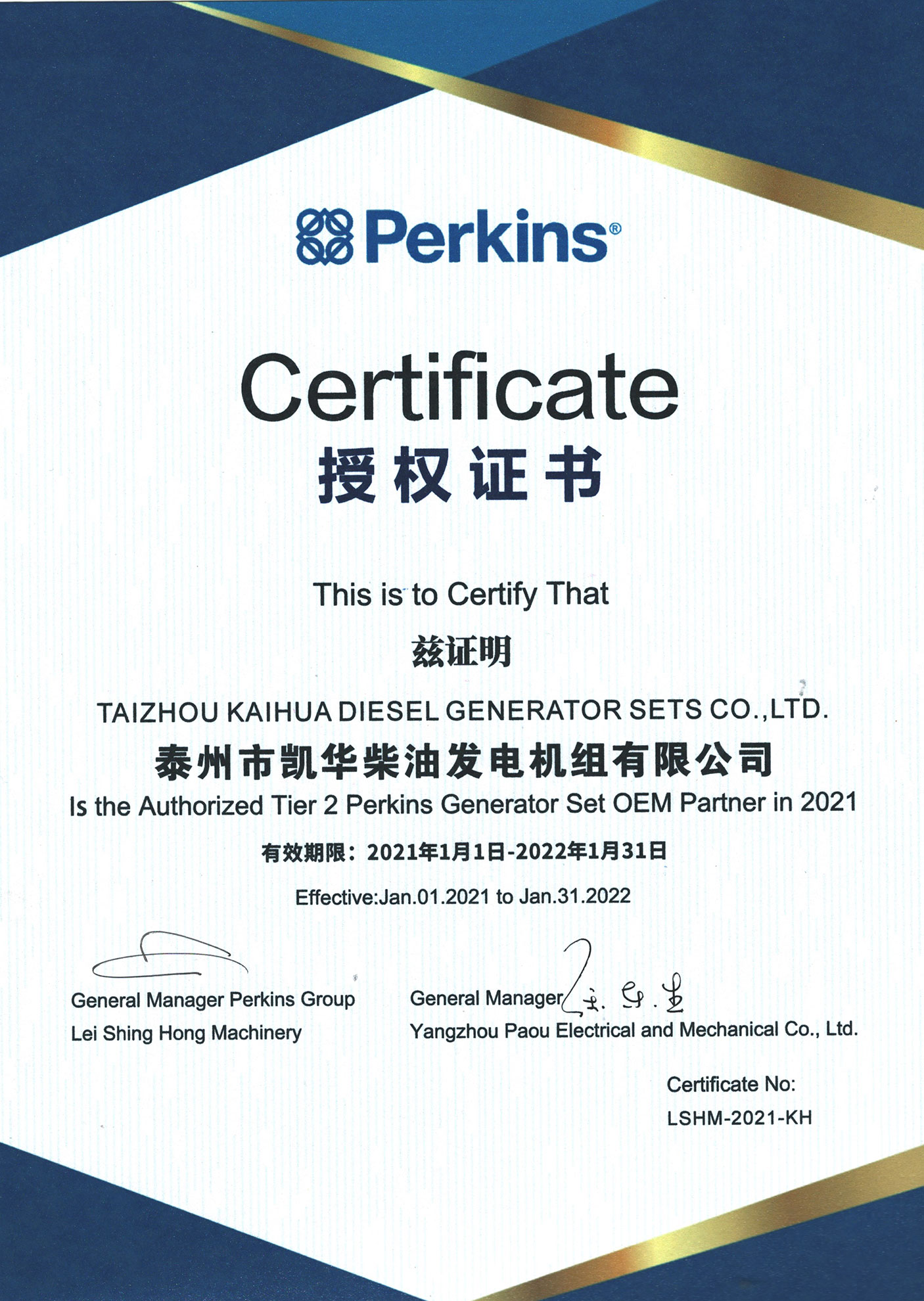 泰州市凱華柴油發電機組有限公司創建于2003年,是一家集柴油發電機組燃氣發電機組的研發、生產、銷售為一體的高新技術民營企業,公司座落于“漢唐古郡,淮海名區”,具有“鳳凰城”美稱的祥泰之州——江蘇省泰州市,地處中國經濟最發達的長三角經濟圈,水陸空立體交通,地理位置十分優越。公司目前注冊資本金11800萬元人民幣,生產基地占地六十畝,現有各類高素質員工一百多名,專業技術人員達46人,其中高級技術人員16人,年銷售額近6億元。 公司主營產品:3~3000KW陸用柴油發電機組,15~600KW移動拖車電站,12~1000KW船用應急柴油發電機組,各種靜音型、中高壓、多機并聯、燃氣等特種機組以及進口系列柴油發電機組,可滿足不同客戶的一切電力需求,還可滿足用戶不同電壓、不同頻率的要求。凱華公司是康明斯品牌的授權代理商,專業生產供應康明斯柴油發電機組。